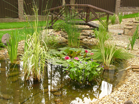 Берега пруда можно оформить с помощью декоративных камней, гальки, щебня, специальной пленки с приклеенными камешками. Главное, чтобы все элементы вашего декоративного пруда и его растительного окружения были в гармонии друг с другом.