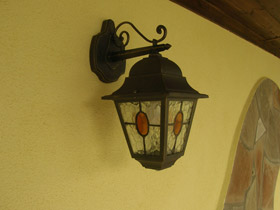 Декоративная штукатурка светлых, теплых тонов (бежево-желтые оттенки) визуально расширяет пространство, а плавная линия камня – смягчает острые углы. Существующие железные трубы, поддерживающие крышу, обиваются деревянной доской. Нижняя часть столбов облицовывается камнем, уложенным торцом («лапша»). Сочетание различных фактур камня, использующихся при облицовке, вносит динамику в восприятие данных строений. За счет контрастных цветов, использованных при тонировании дерева, создается ощущение глубины и легкости.